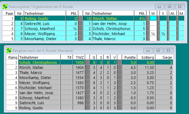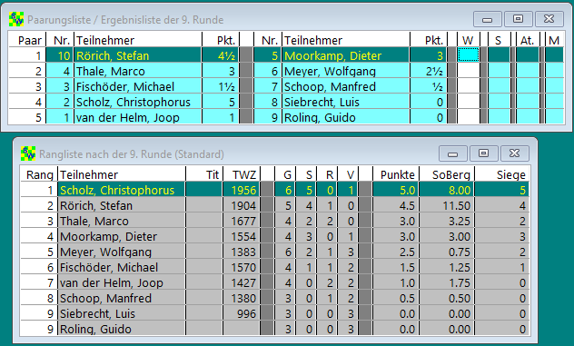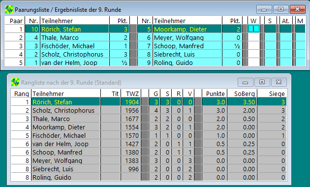 9 Runden jeder gegen jeden